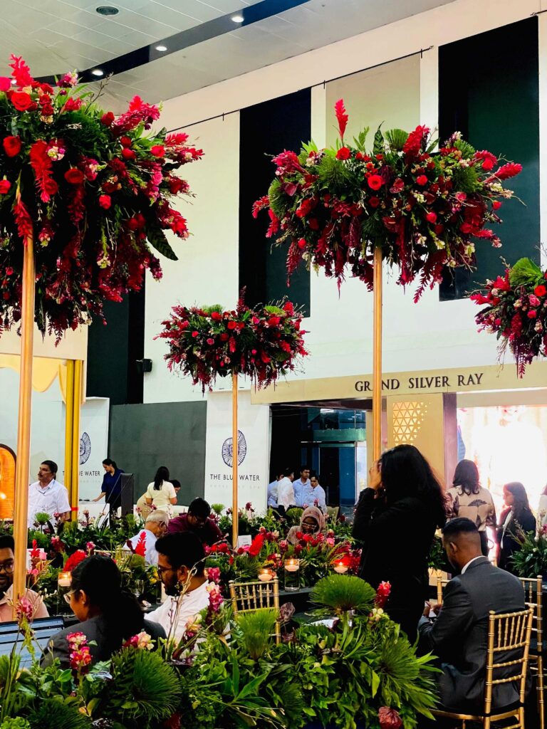 Some clients ask for fresh flowers, while others ask for artificial ones. However, what’s important here is not whether a flower is fresh or artificial; what matters is how those flowers are arranged for an event like this. We can also import flowers not available in Sri Lanka to create these decorations. We support our clients in every way like this.